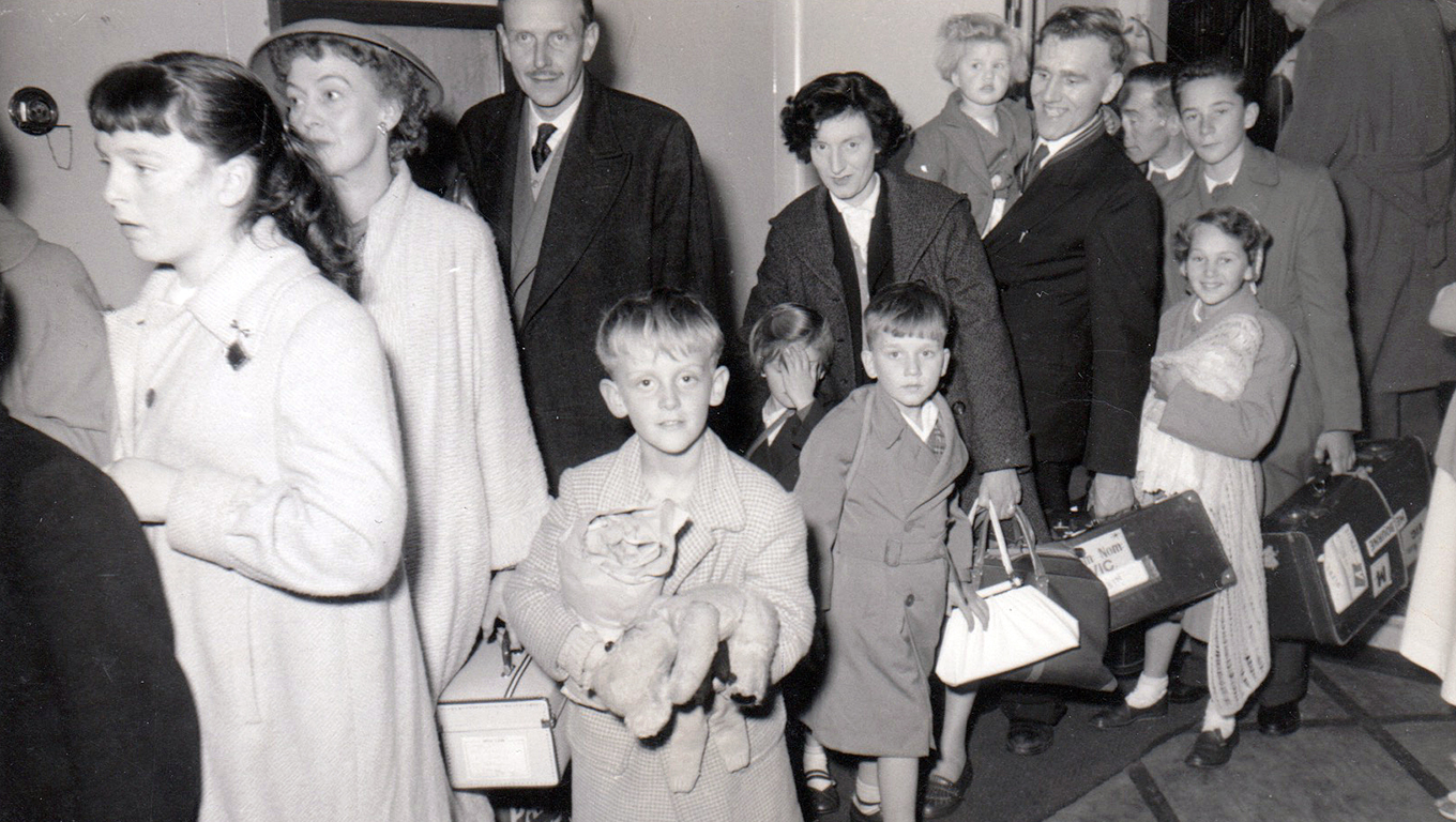 The year is 1956, and the small boy in the middle of the photo, clutching a battered teddy, plus what appears to be a bag of laundry, is me. I don’t look very well, do I? But, to be fair, I am about to leave England where no-one is particularly well. The stylish woman to my right is my mother. She is wearing her look of sufferance, since she doesn’t want to make this journey. The man behind me is my father. His expression seems to be one of boyish excitement with maybe a tinge of triumph.